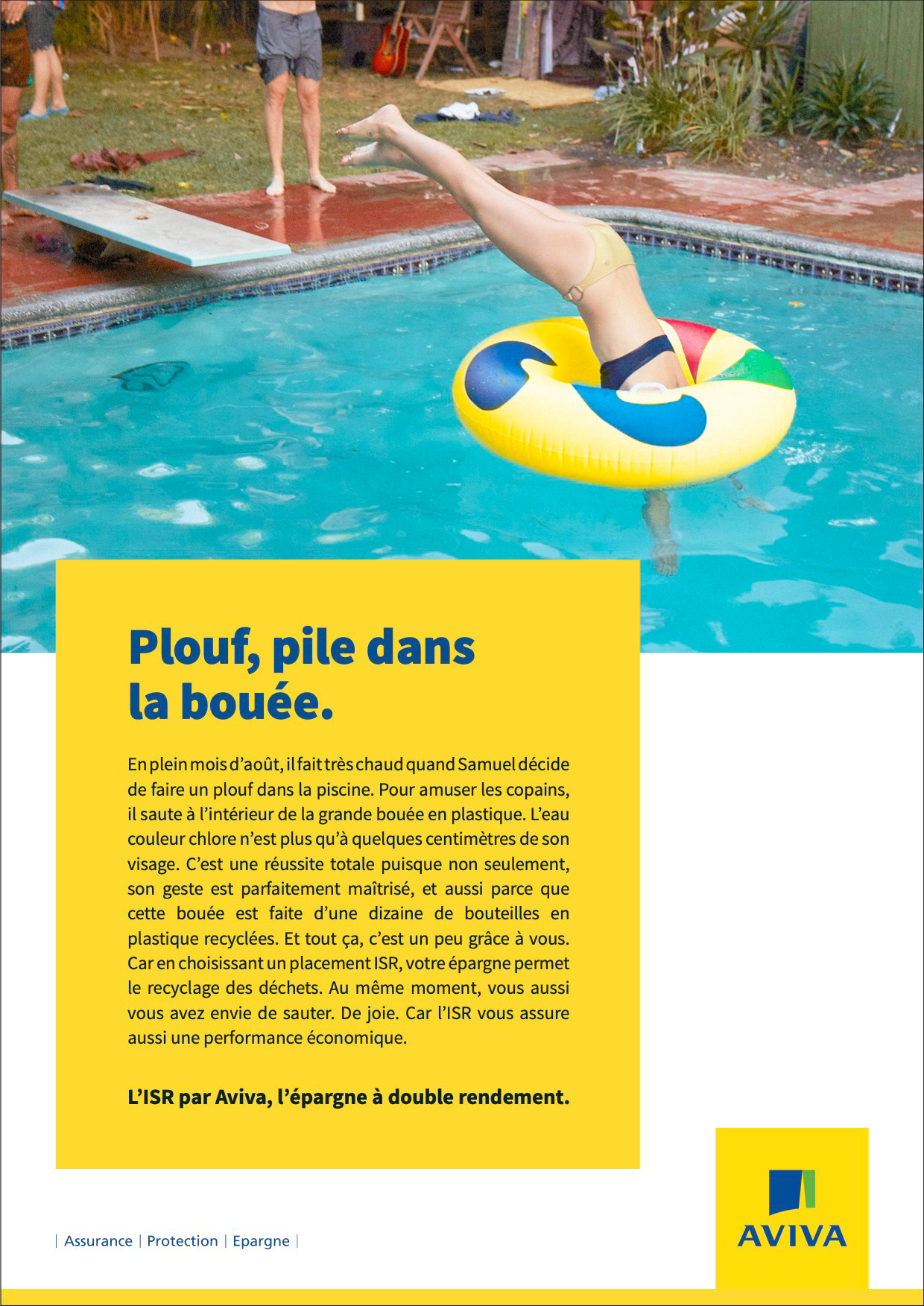 Avec Aviva, on investit pour soi, pour booster son épargne mais aussi pour la planète, la société. Nous avons appelé cela l'épargne à double rendement, mise en image dans des plans séquences minimalistes puis dans des annonces presse.
